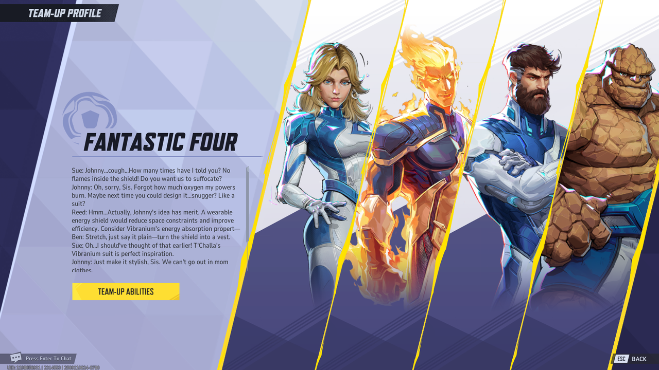 Marvel Rivals è un gioco competitivo 6v6 hero shooter. il gioco si basa sulla meccanica dei "team up", che sono abilità aggiuntive solo se i giocatori giocano 2 o più personaggi nello stesso tema che hanno questo team up disponibile. ecco un esempio di team up: