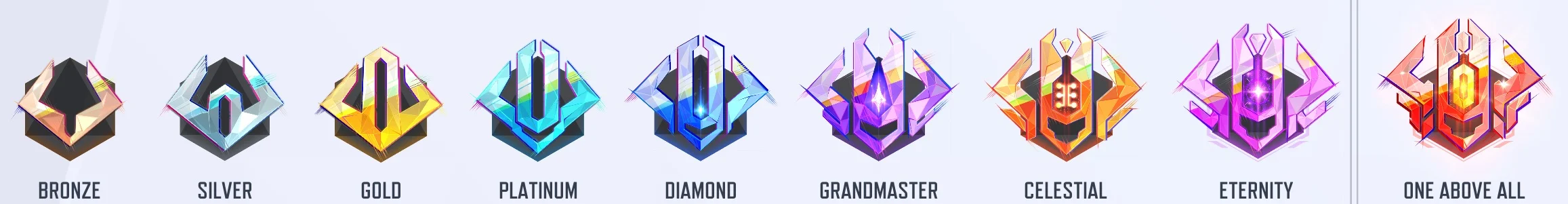 esistono vari tipi di partite diverse le principali sono competitiva e partita veloce, in competitiva si fa sempre un roud in più rispetto alla partita veloce, in competitiva ci sono 3 modalità principali che sono: convergenza, scorta e dominio, in dominio devi conquistare la zona e impedire che la squadra avversaria la conquisti (in questa modalità non ci sono variazioni rispetto alla partita veloce), convergenza e scorta sono simili ma hanno una piccola differenza cioè che in scorta devi portare un payload da un punto A ad un punto B con i checkpoint in mezzo per poter cambiare luogo di spawn e tutte e ci sono due round dove una squadra difende e una attacca e vice versa, in convergenza ci sono sempre due round con attacanti e difensori ma invece di avere subito il payload la squadra che attacca deve prima cercare di conquistare una zona e dopo averla conquistata iniziano ad avanzare con il payload. questi sono i rank che ci sono disponibili per la modalità competitiva: